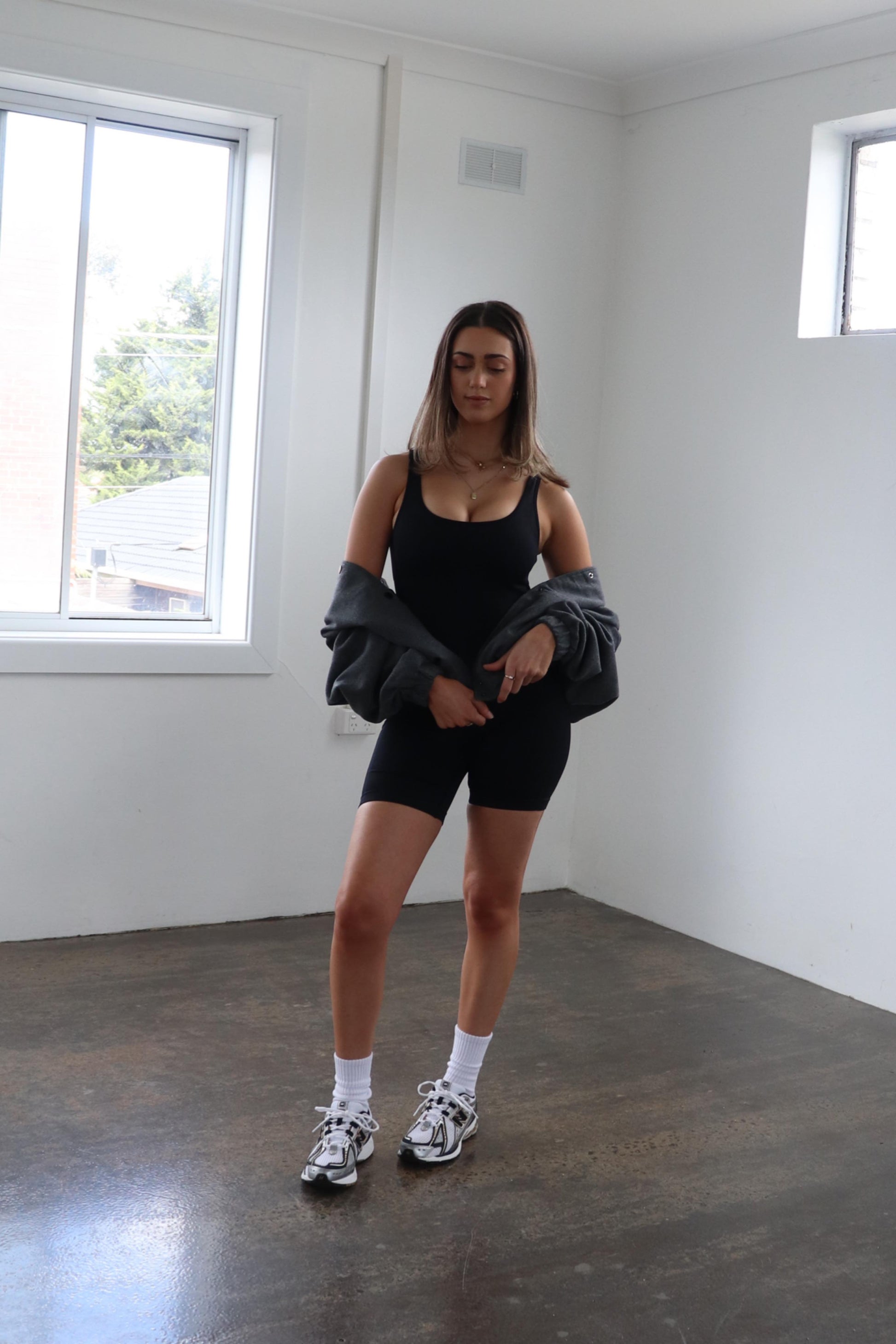Buttery soft and figure hugging, this all in one playsuit is designed for both comfort and movement. We've decided to keep visible outer logo's off this one because its minimalist design and backless detail speaks for itself. Perfectly paired with our Charcoal Grey Bomber.